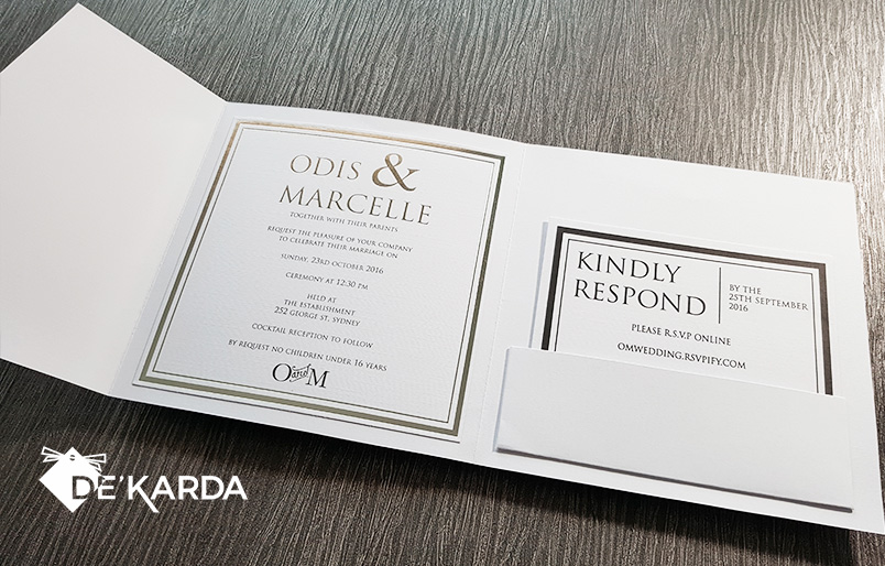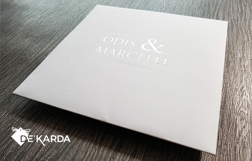- content 1 page, printed in regular ink, only the bride and groom names in hot foil