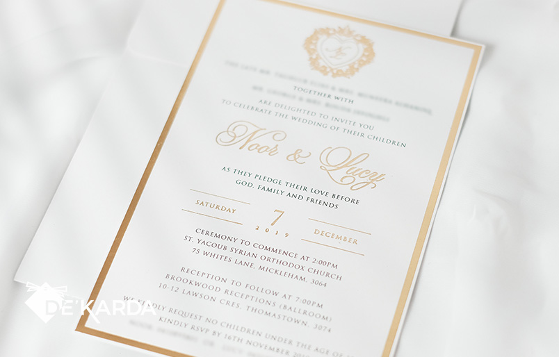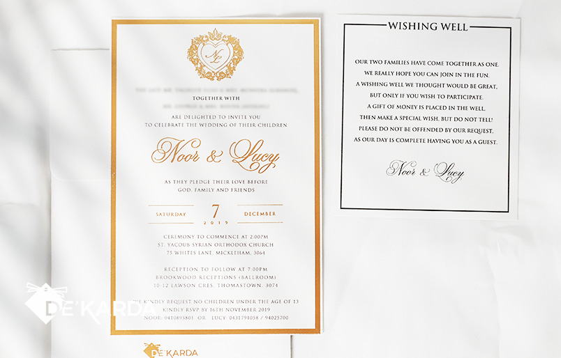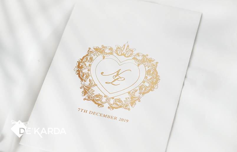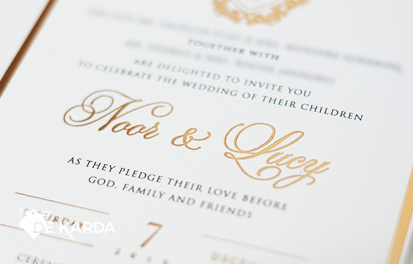 - content 1 page, printed in regular ink 1 color, only bride and groom names in hot foil
