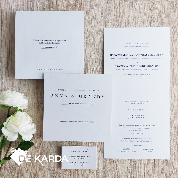 - content 1 page, printed in regular ink 1 color, only bride and groom names in hot foil