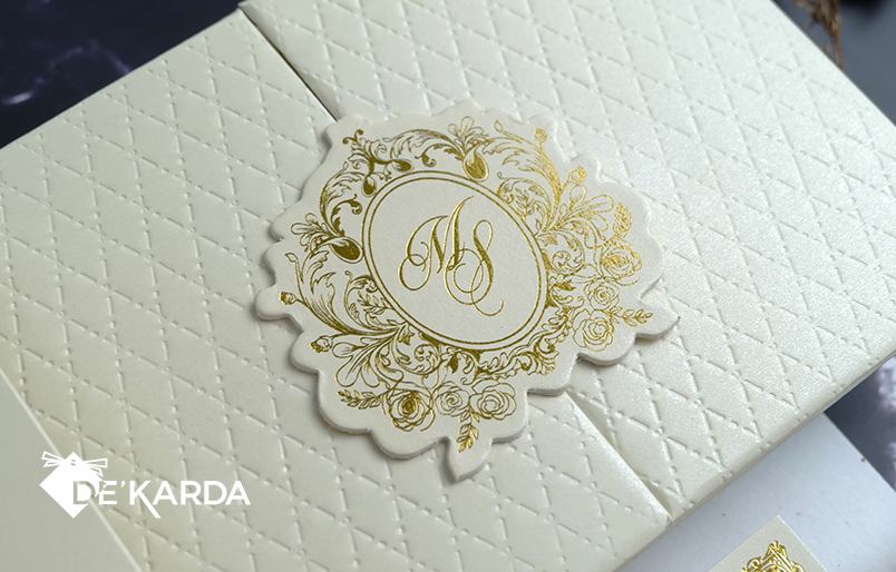 - monogram in 3D cardboard on the cover printed in hot foil and embossed