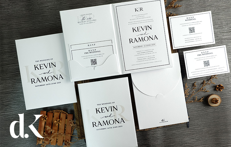Embrace timeless sophistication with our Classic Monochrome Bifold Hardcover Wedding Invitations. This elegant black and white suite features a distinctive bifold design that opens like a keepsake book, revealing your wedding details in striking typography with elegant script accents. Each suite includes complimentary RSVP cards with a QR code linked to your free digital RSVP website for effortless guest responses. Personalize the typography, layout, and wording to perfectly reflect your unique style. Contact our Customer Service team for assistance with customization and ordering.