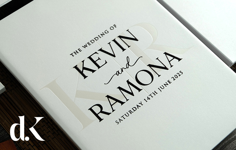 - hardcover invitation 18x12cm printed in hot foil and embossed