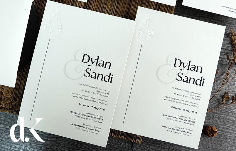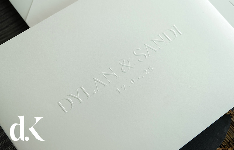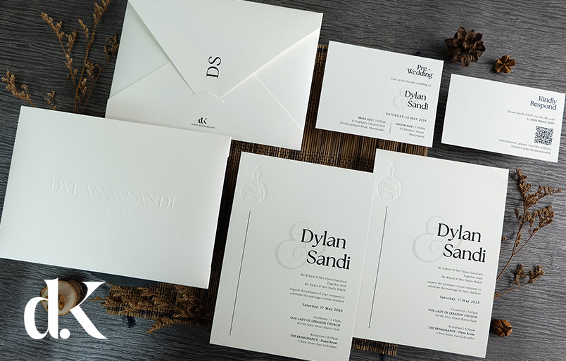 Crafted on premium 500gsm paper, each invitation features your names in striking modern typography with an elegant ampersand accent that's beautifully highlighted through blind embossing technique. The complete suite includes a white envelope with personalized initials in refined typography, along with pre-wedding and RSVP cards featuring QR codes linked to your free digital RSVP website for convenient guest responses. The minimalist aesthetic allows your details to take center stage while maintaining an air of sophisticated refinement. Contact our Customer Service team for assistance with customization and ordering.